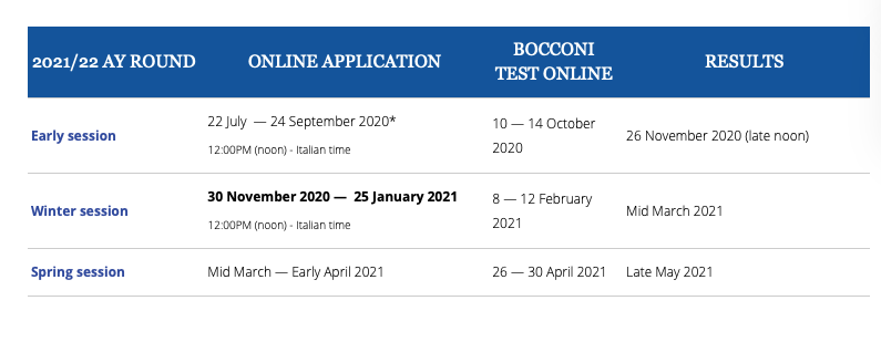 博科尼大学的本科分为冬季申请和春季申请,一般妈妈咪呀都会为同学们来申请冬季申请,让我们一起来看一下: